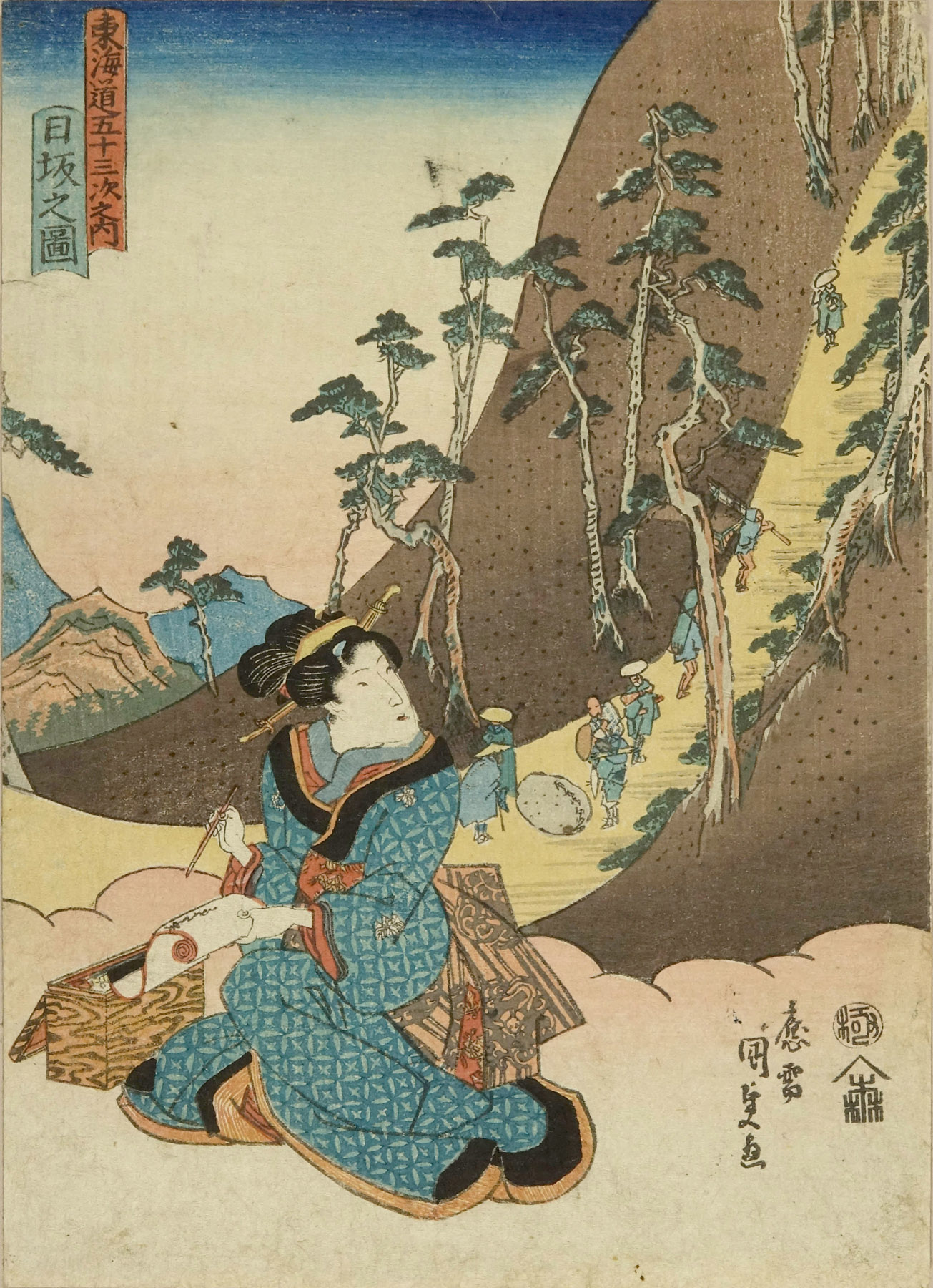 KUNISADA / Nissaka, from Tokaido gojusan tsugi no uchi (the Fifty-three stations of the Tokaido)
