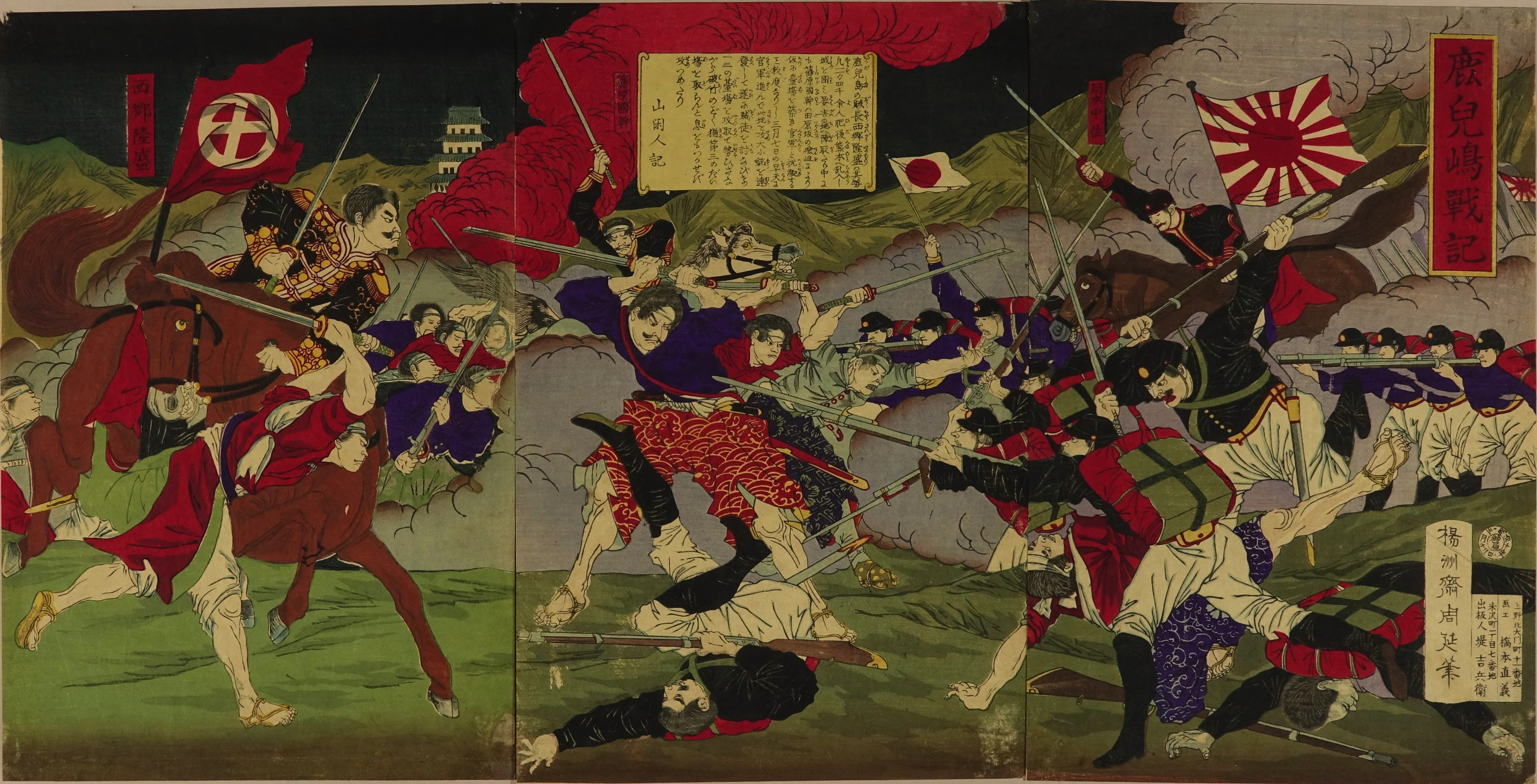 Scene of the Satsuma Rebellion, triptych