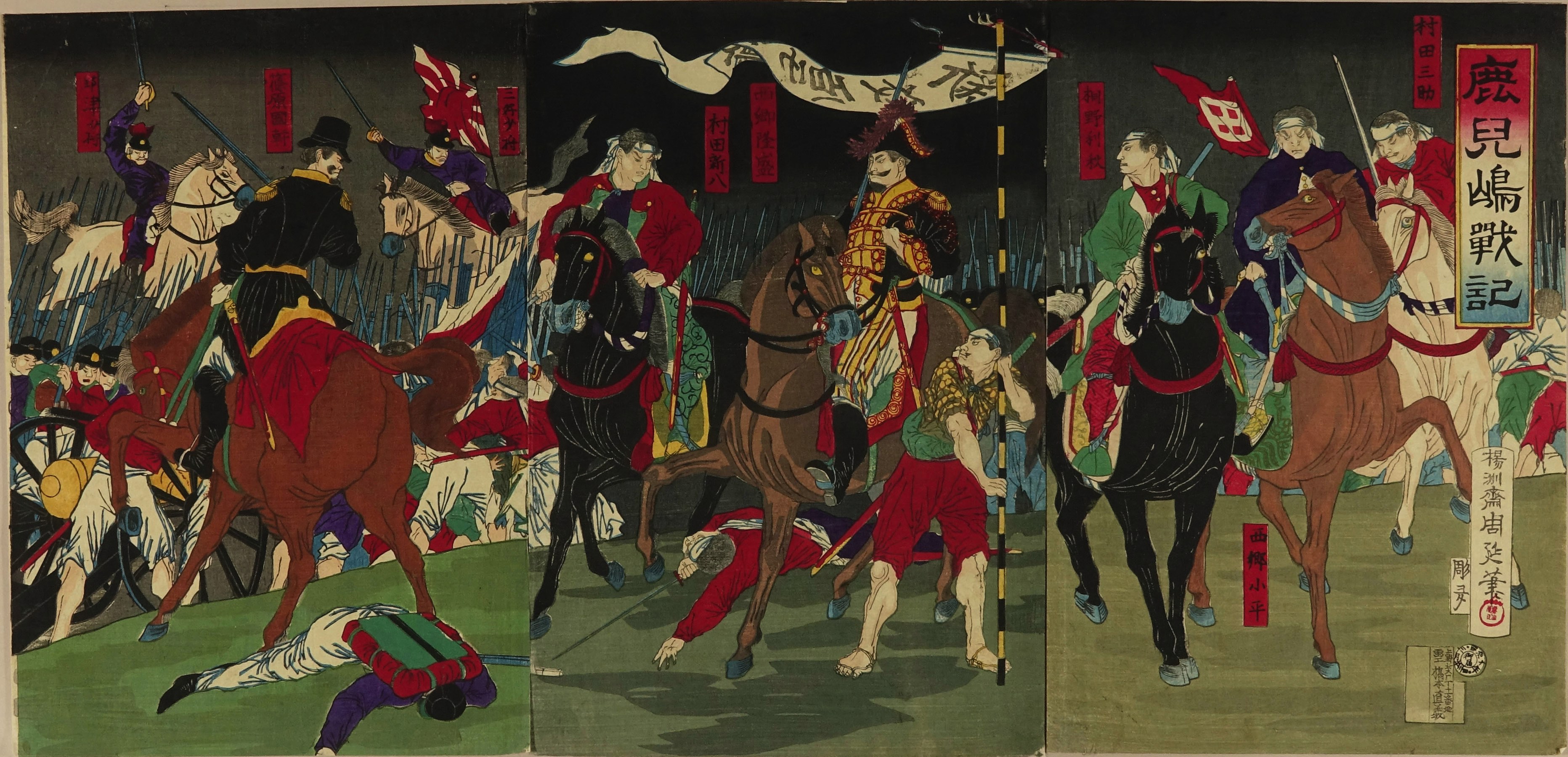 Scene of the Satsuma Rebellion, triptych