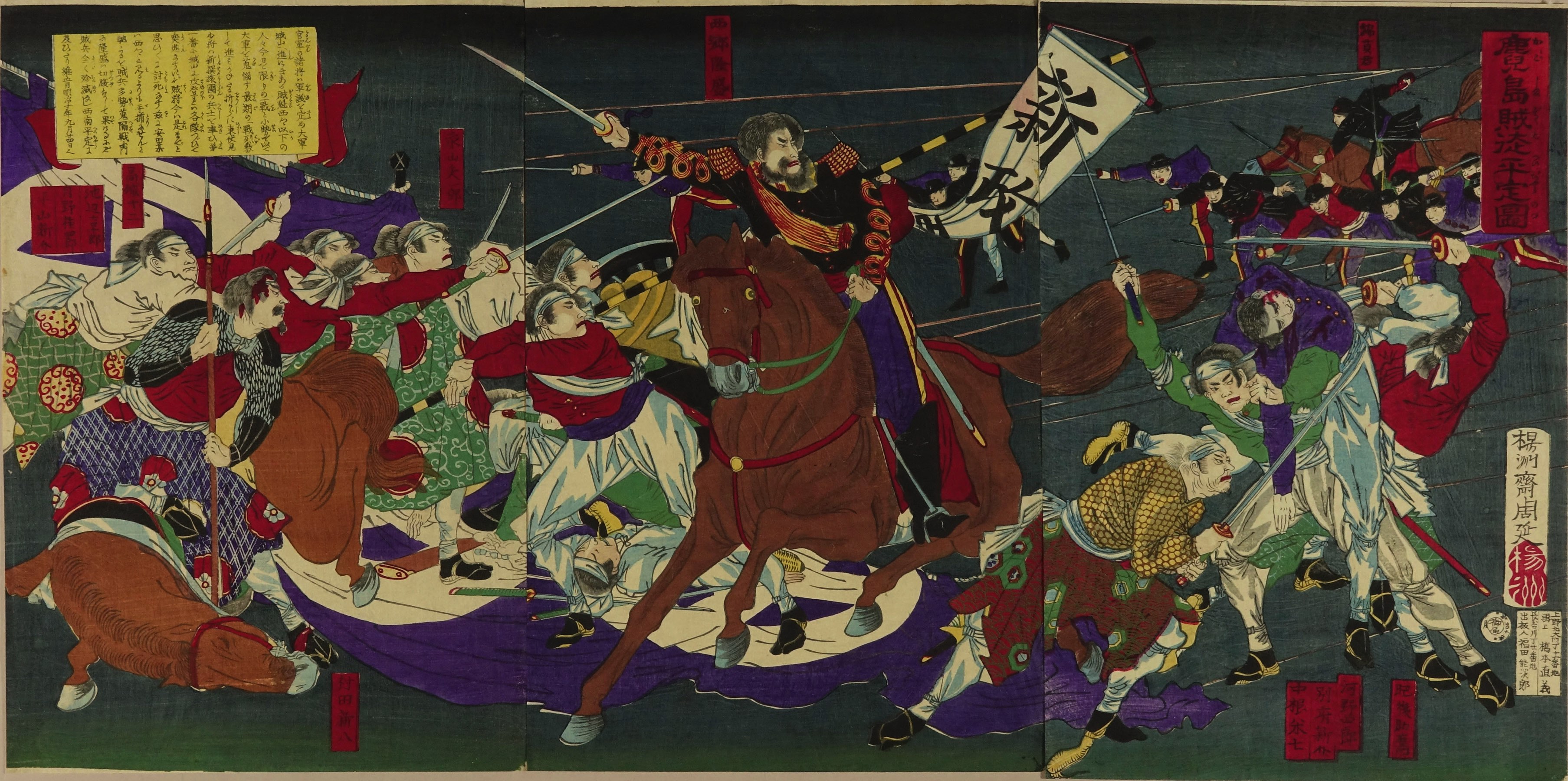 Scene of the Satsuma Rebellion, triptych