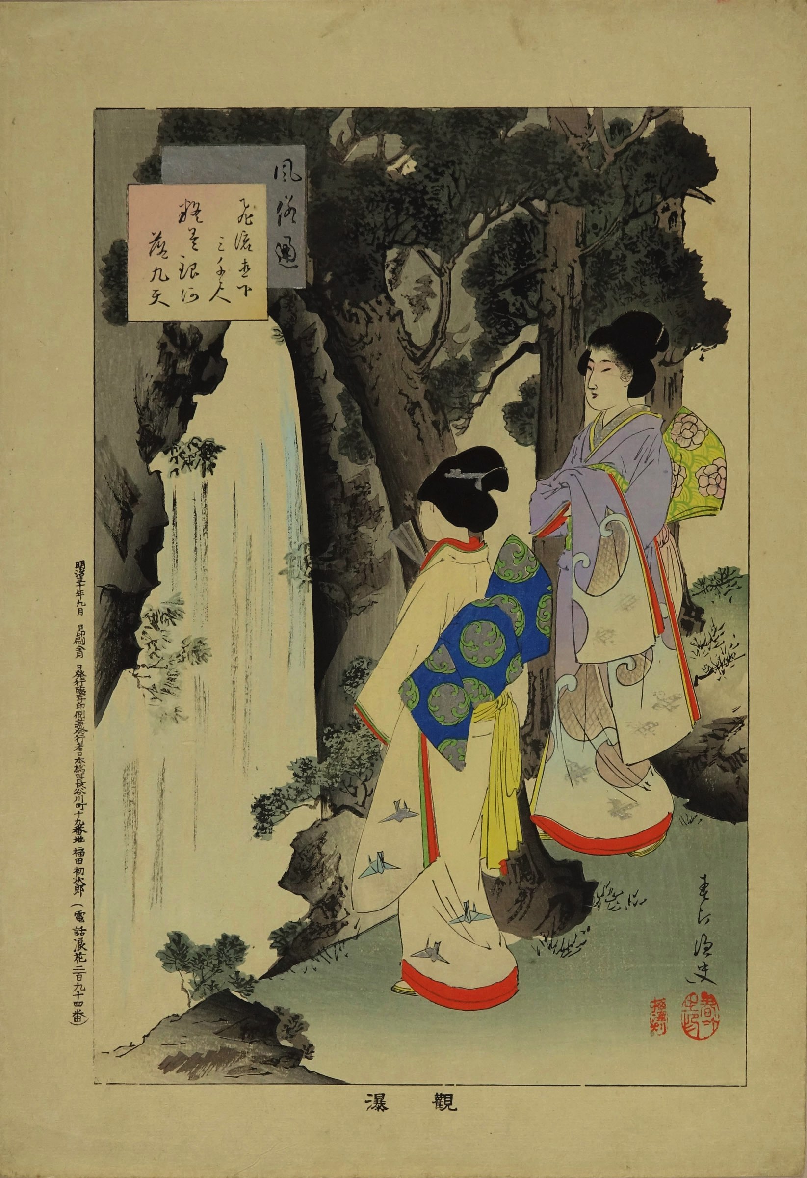 SHUNTEI / Kanbaku (Viewing waterfall), from Fuzoku tsu (Complete Popular Customs)