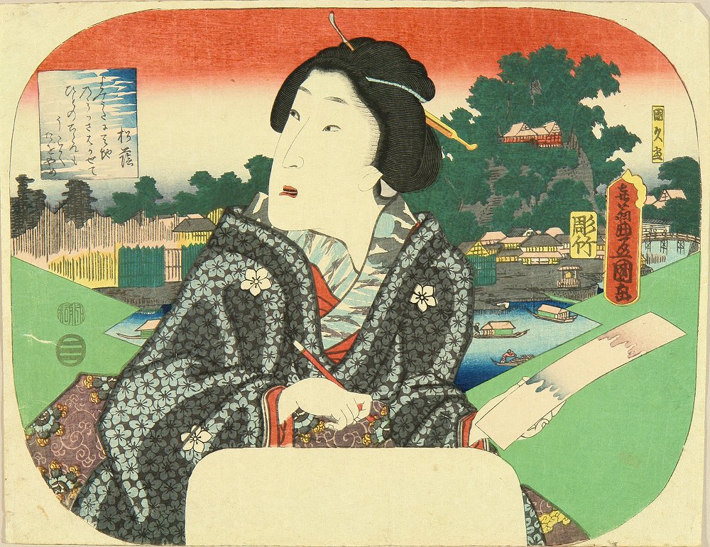 TOYOKUNI III / A beauty holding a poem card