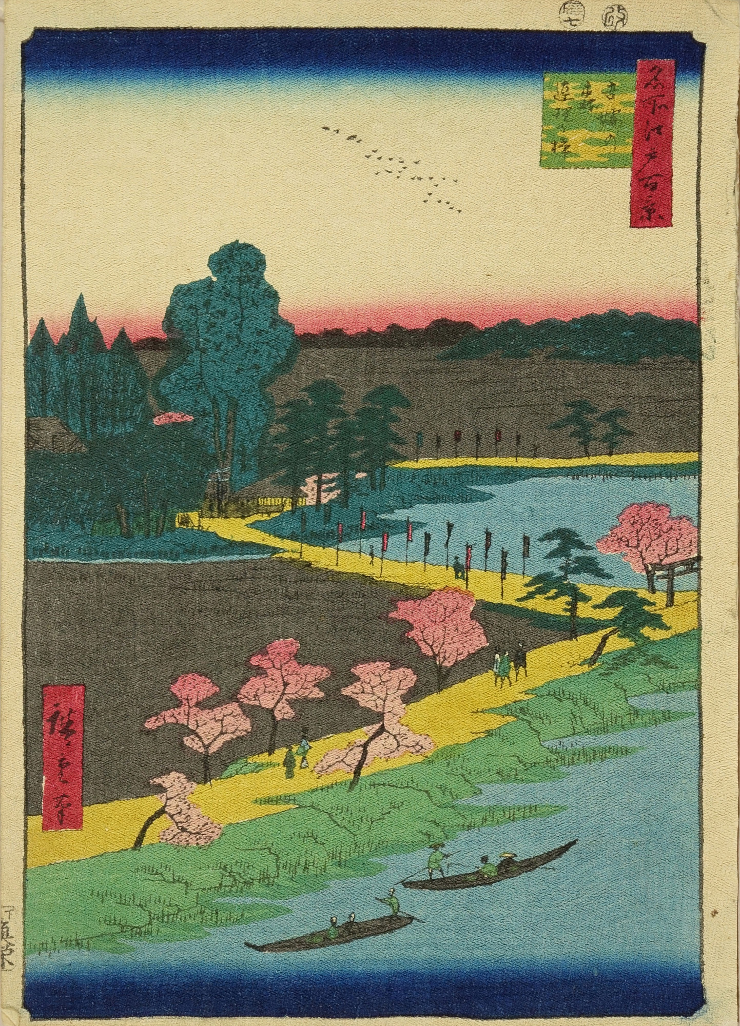 HIROSHIGE / Chirimen-e (creped print), Azuma Forest, from Meisho Edo hyakkei (One hundred views of famous places of Edo)