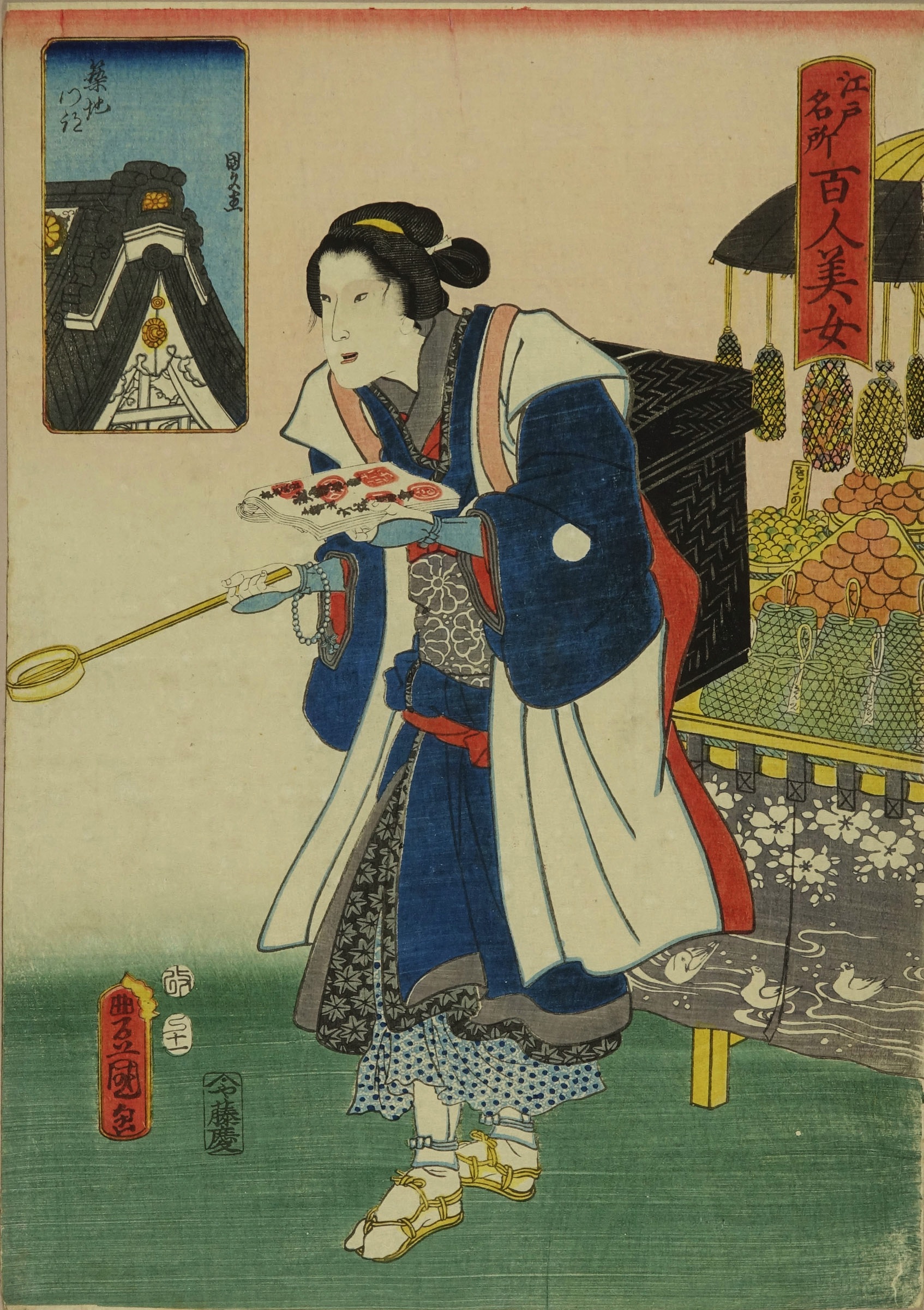 TOYOKUNI III / Tsukiji, from Edo meisho hyakunin bijo (One hundred famous places and beauties of Edo)
