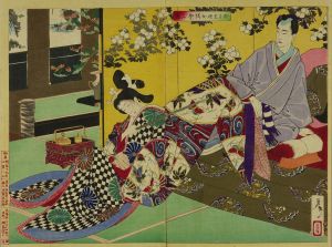 Osame yujo o manabu zu (Osame learns the courtesan’s trade), from Shinsen azuma nishiki-e (New selection of eastern brocade pictures), diptych