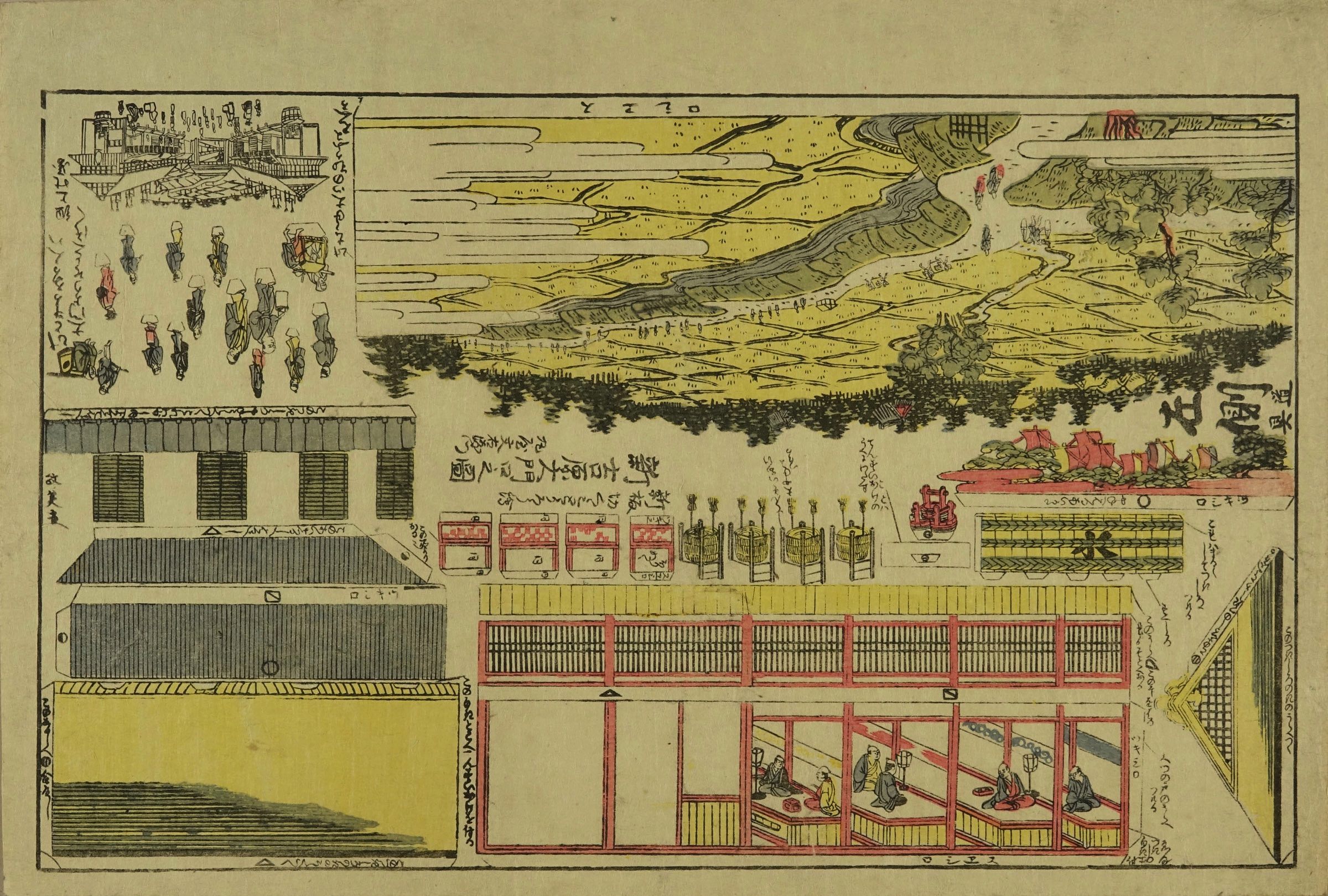 Miniature model of a view of Shin-Yoshiwara, one sheet out of two