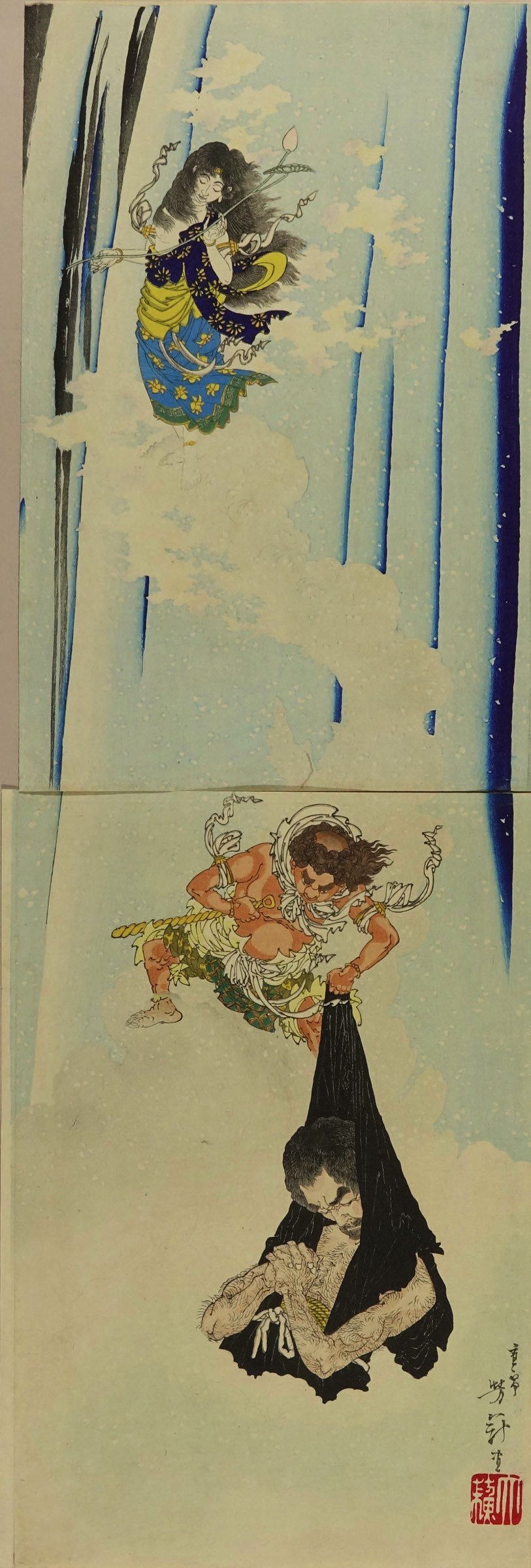 Mongaku shonin aragyo no zu (Picture of the penance of the priest Mongaku), vertical diptych