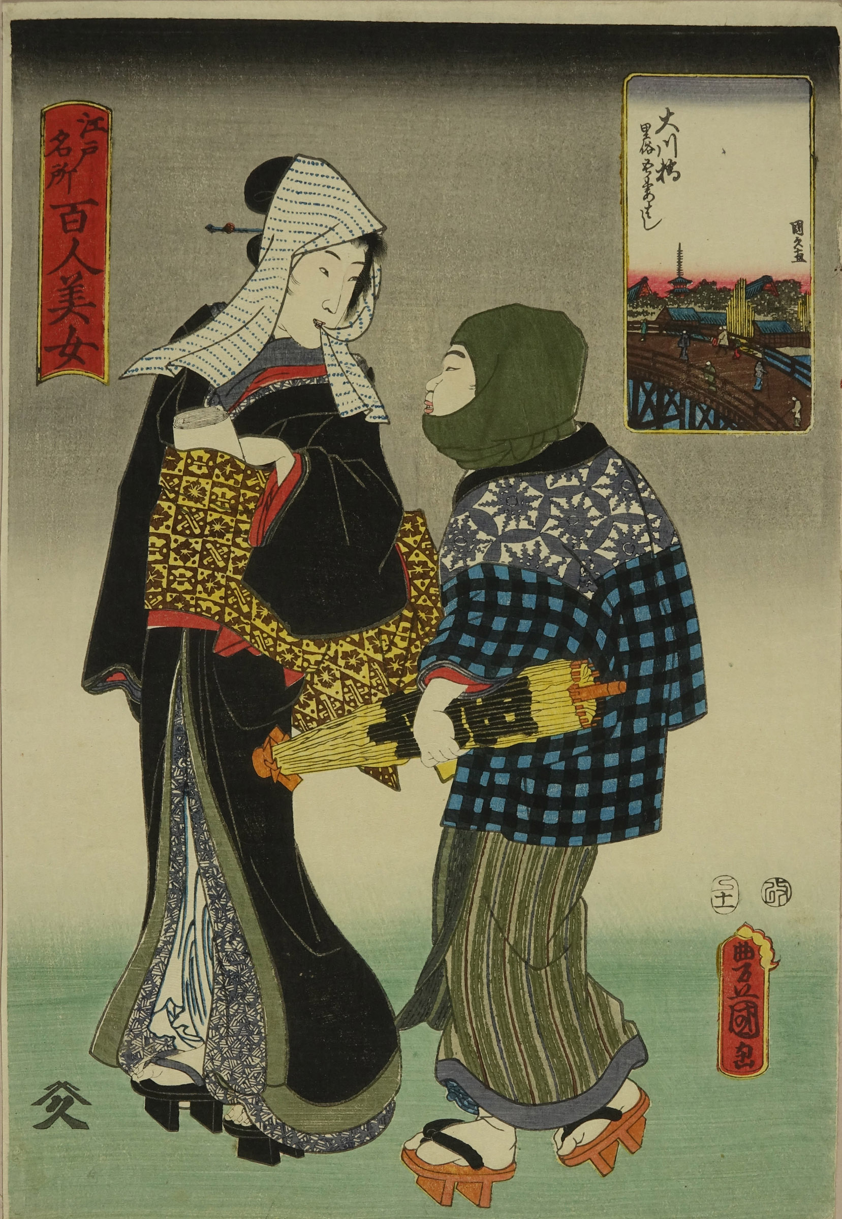 TOYOKUNI III / Okawa Bridge (Azuma Bridge), from Edo meisho hyakunin bijo (One-hundred famous places and beauties of Edo)