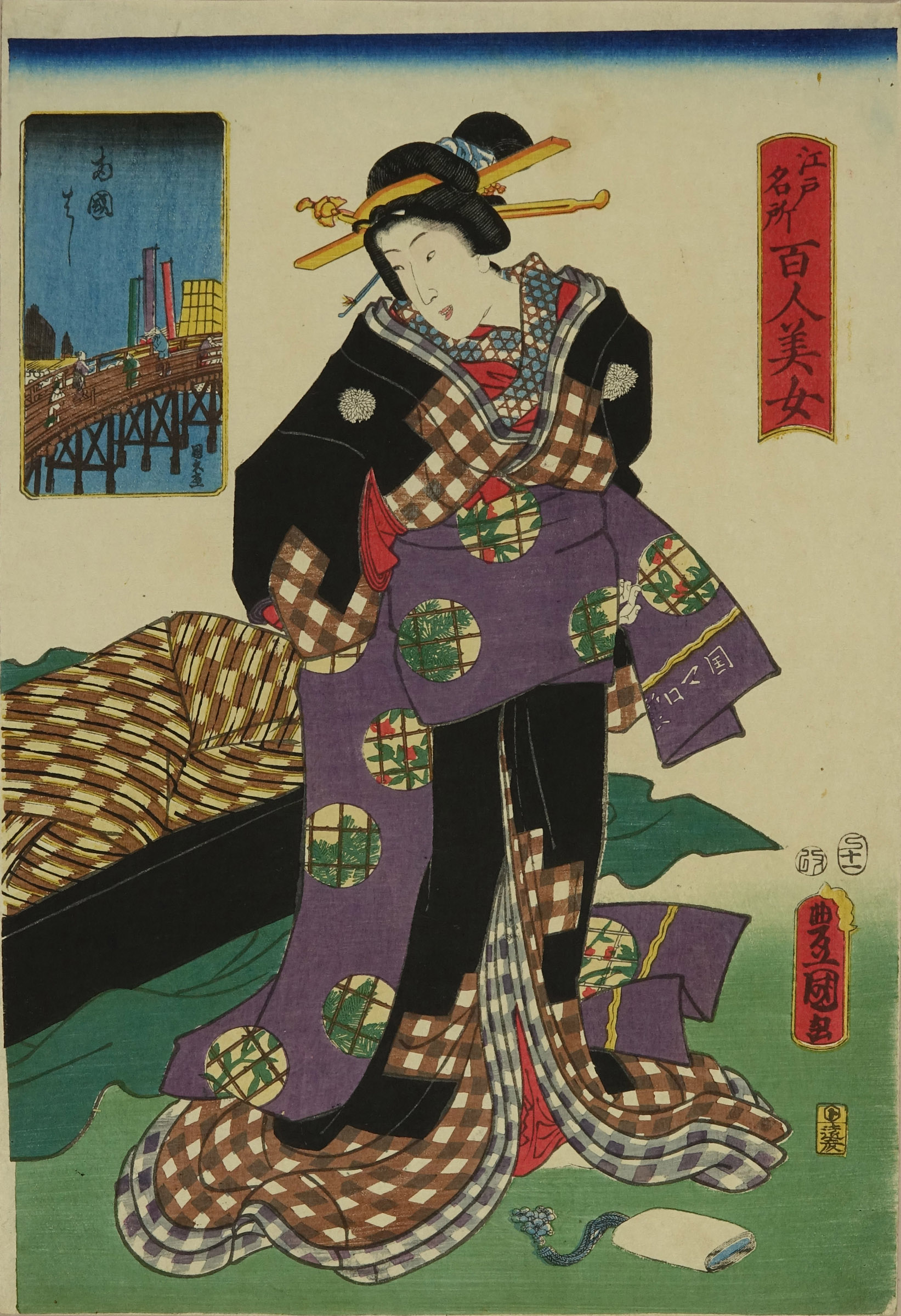 TOYOKUNI III / Ryogoku Bridge, from Edo meisho hyakunin bijo (One-hundred famous places and beauties of Edo)