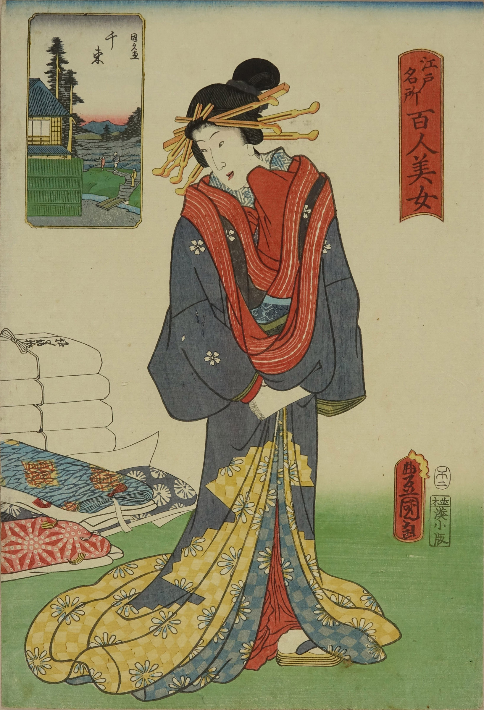 TOYOKUNI III / Senzoku, from Edo meisho hyakunin bijo (One-hundred famous places and beauties of Edo)