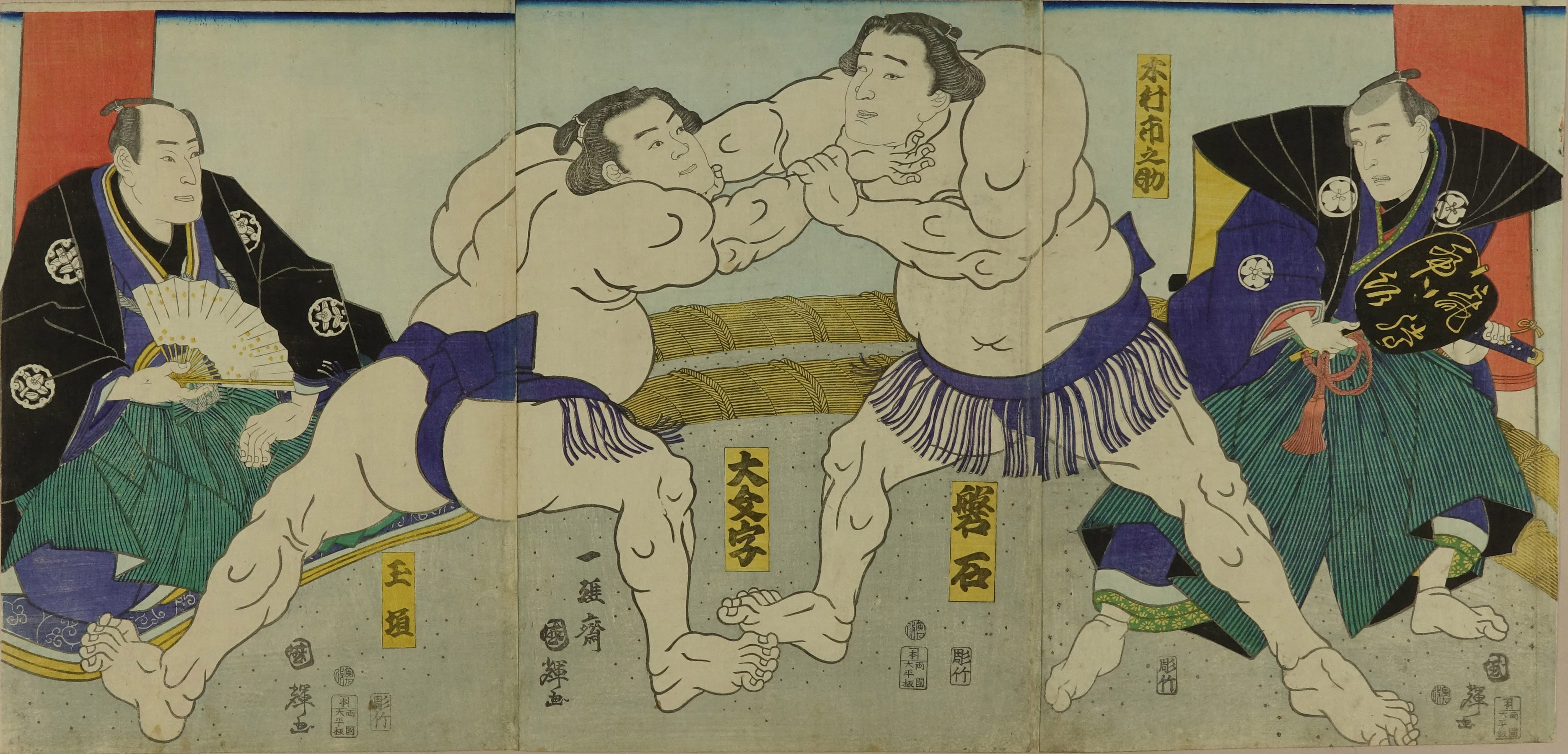 KUNITERU II / Sumo match between Banjaku and Daimonji, triptych