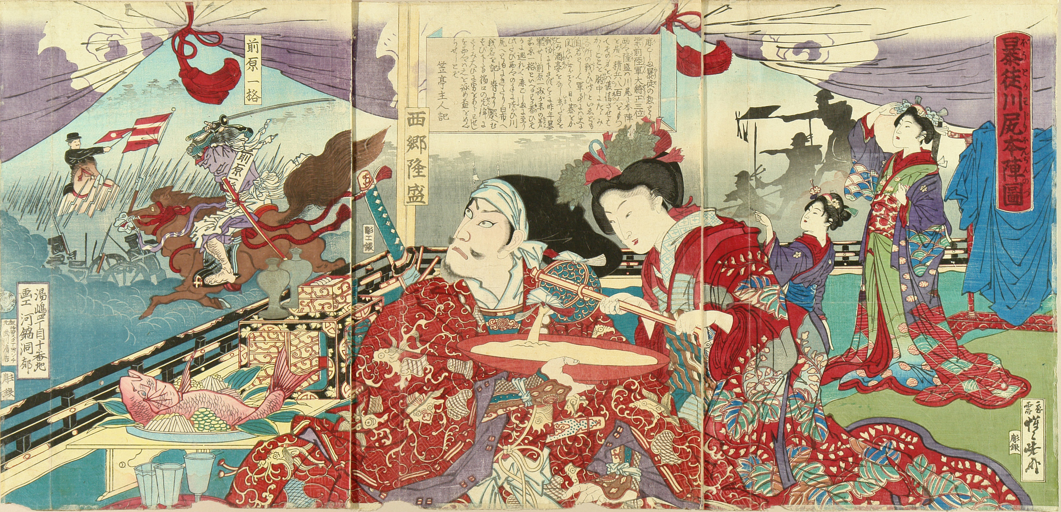 Portrait of the actor Ichikawa Danjuro in the role of Saigo Takamori, triptych