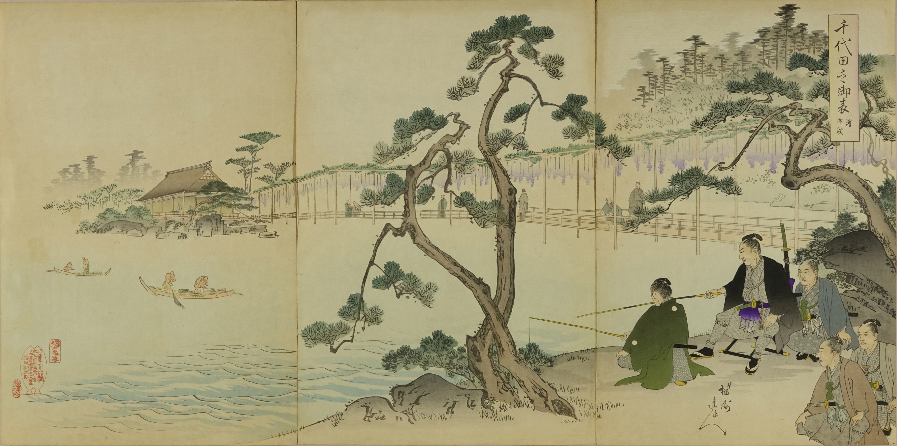 Hama onari (Shogun at Hamarikyu Palace), from Chiyoda no on'omote (Outer palace of Edo Castle), triptych