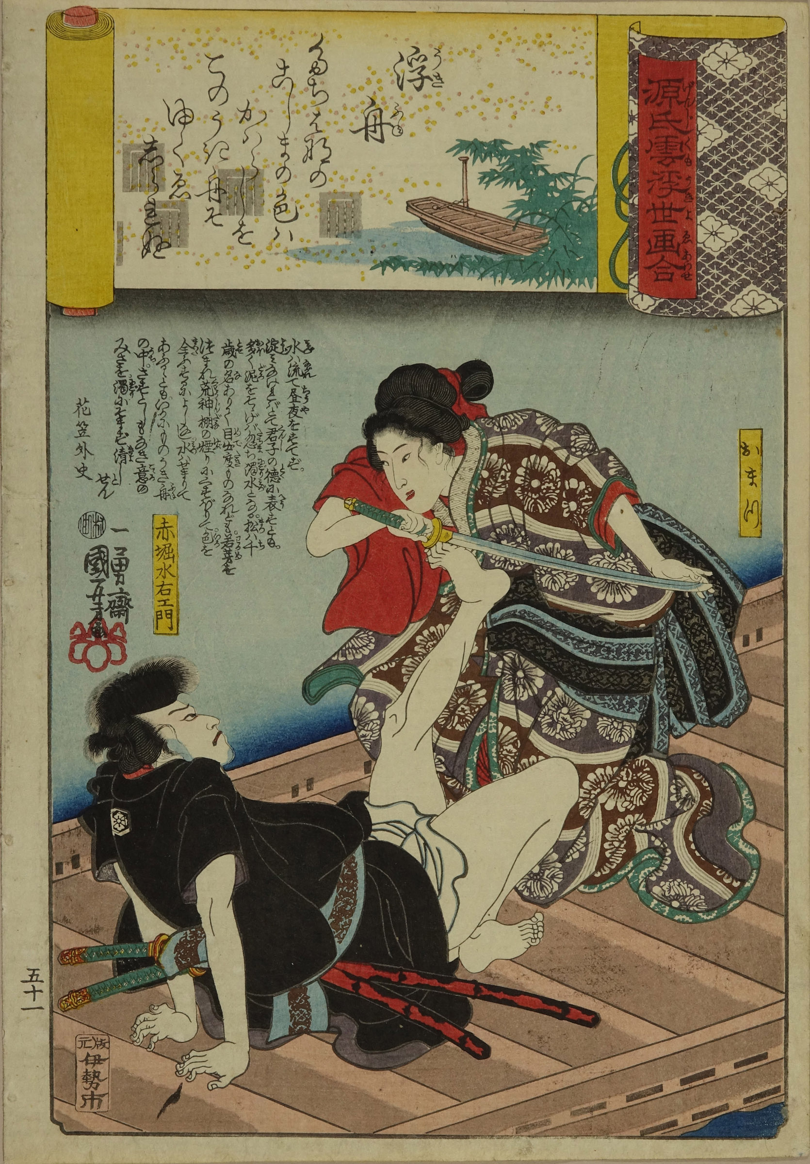 Chapter 51, Ukifune, from Genjigumo ukiyo-e awase (Collections of ukiyo-e and Genji cloud patterns)