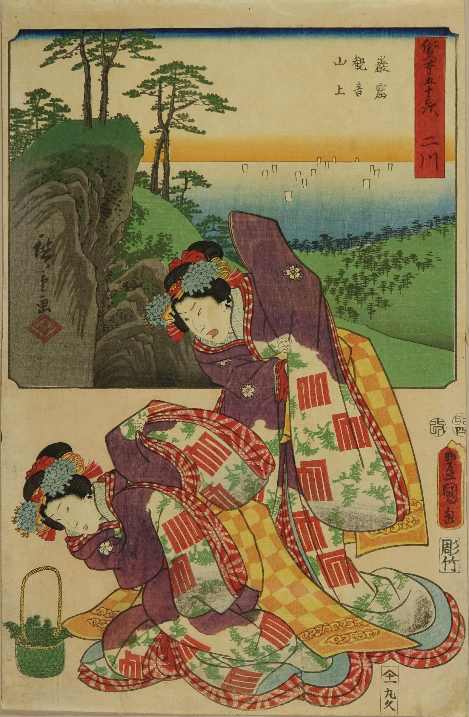 HIROSHIGE / TOYOKUNI III / Futagawa, from Sohitsu gojusan tsugi (Twin-brush fifty-three stations [of the Tokaido])