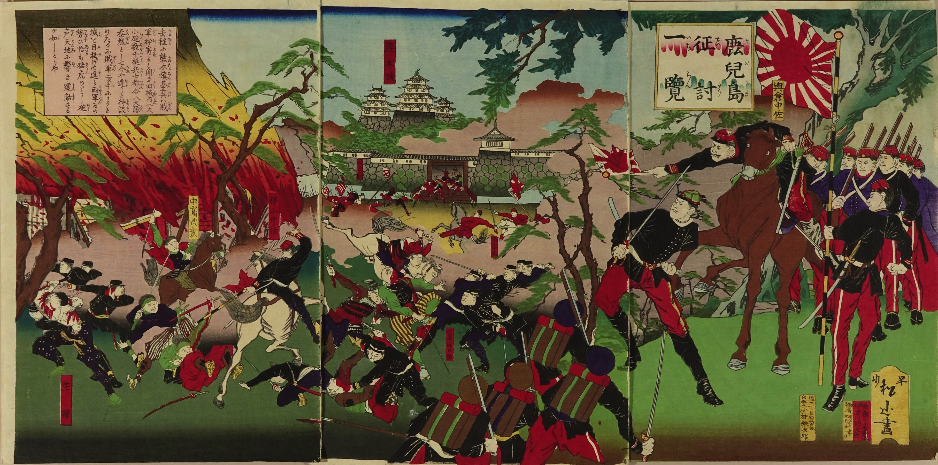 Scene of the Satsuma Rebellion, triptych