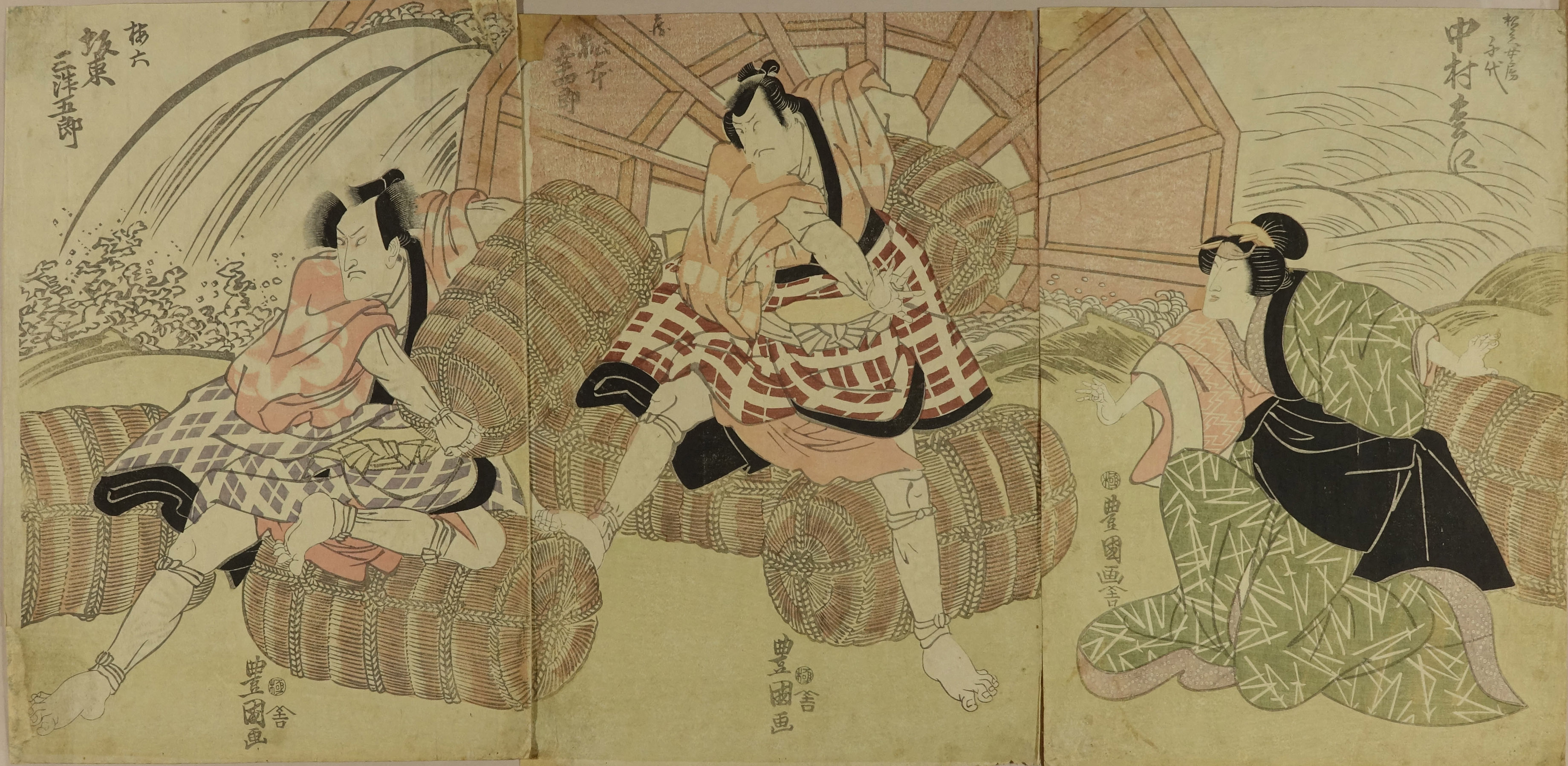 Scene of a kabuki performance, triptych
