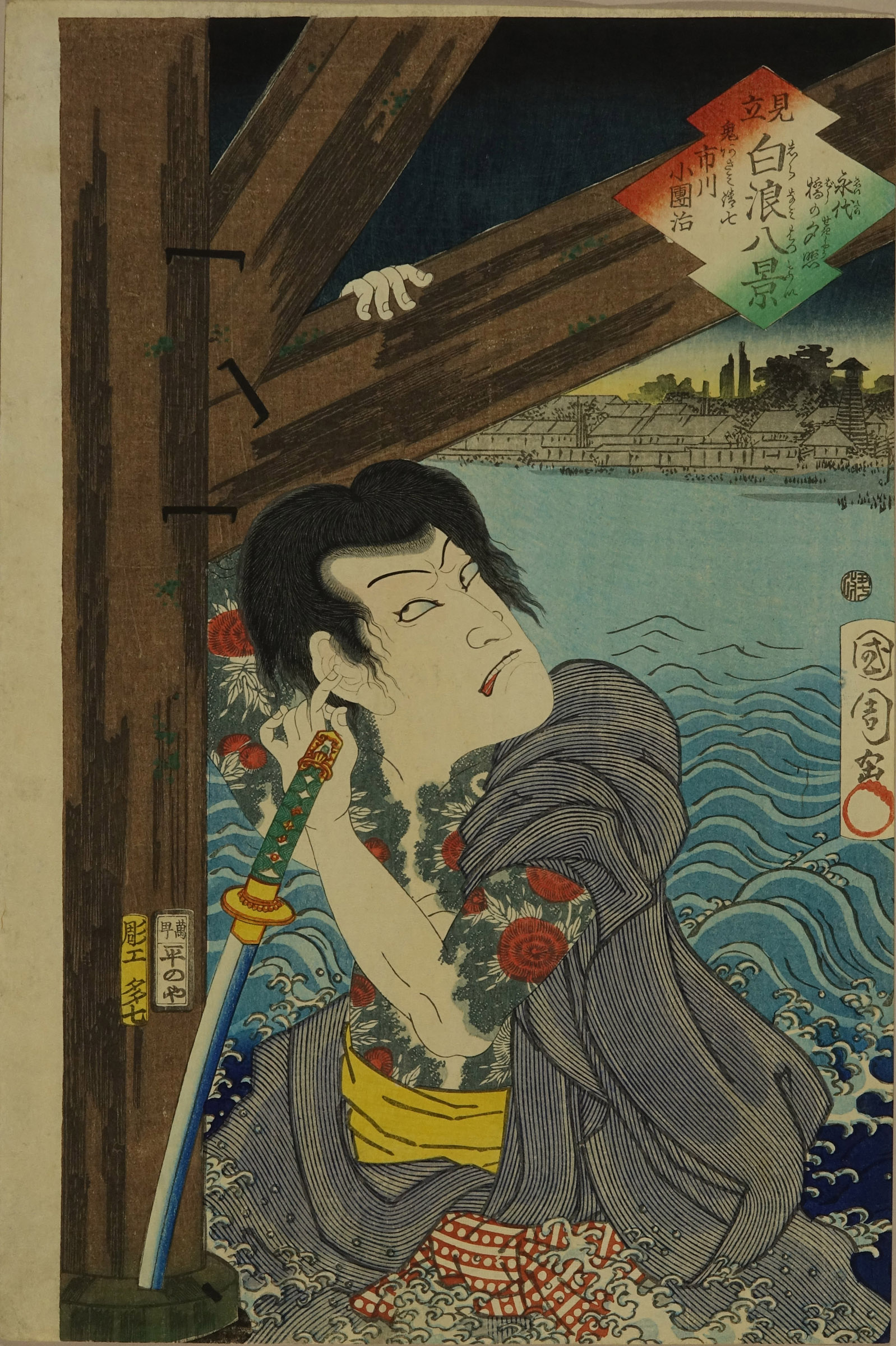 国周 見立白浪八景 永代橋の夕照 鬼あさミ清七 市川小団次 | 浮世絵 | 原書房 神田神保町