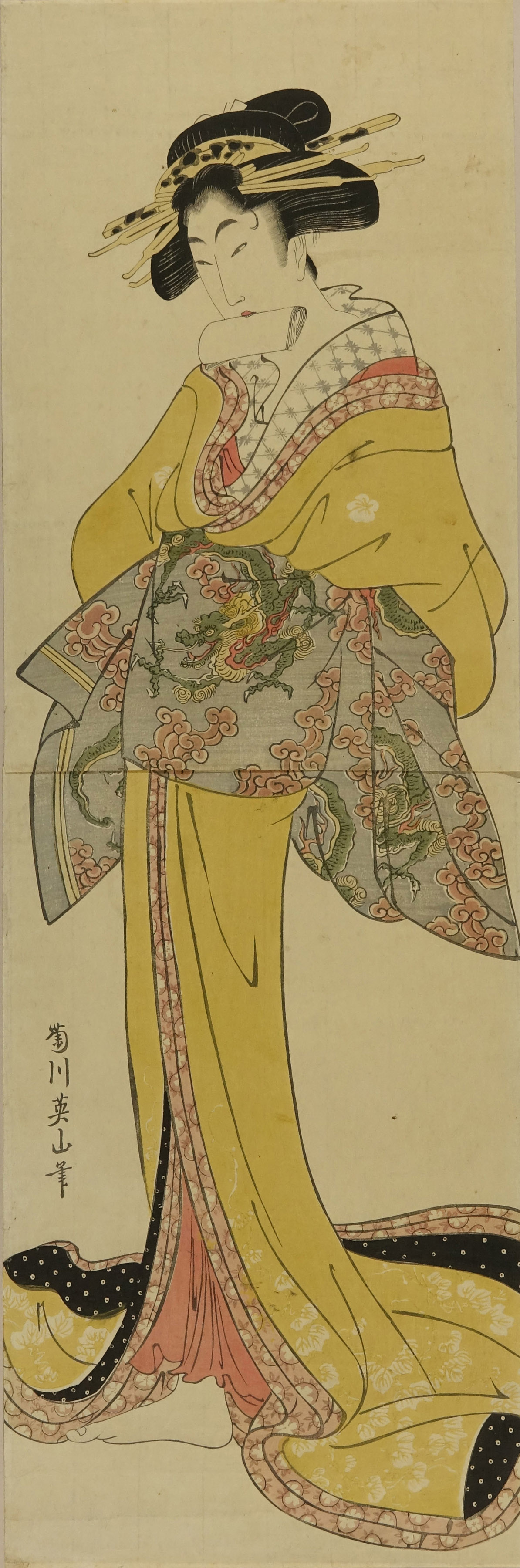 英山 懐紙を咥える美人 | 浮世絵 | 原書房 神田神保町
