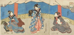 TOYOKUNI III / Bijin tori awase (Beauties at cockfighting), triptych