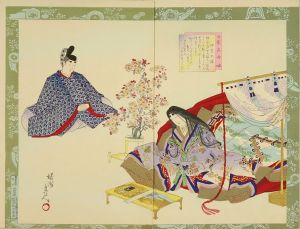 Ise no Taifu, from Nihon meijo banashi (Stories of famous women of Japan), diptych, printed on luxury paper, details embossed and printed in metallic pigment