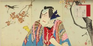 Portrait of the actor Ichikawa Sadanji in the role of Gosho Gorozo, subtitled Hana (Flower), from Setsugekka no uchi (Snow, moon, and flower), triptych