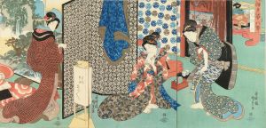 KUNISADA / Courtesans in an interior, from Edo sugata hakkei (Eight views of lisensed quarters of Edo), triptych