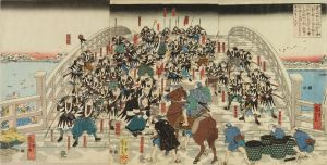 KUNIYOSHI / Forty-seven loyal retainers crossing Ryogoku Bridge after accomplishing their revenge, triptych