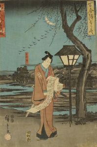 A scene of the play Ukiyozuka hiyoku no inazuma, from Kokon joruri zukushi (Collection of joruri play of present and past)