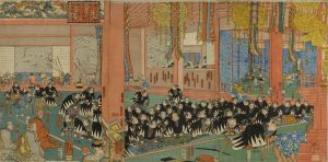 KUNIYOSHI / Retainers visiting Asano's alter at Sengakuji Shrine after the revenge, triptych