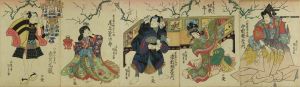 KUNISADA / A scene of a kabuki performance, pentaptych