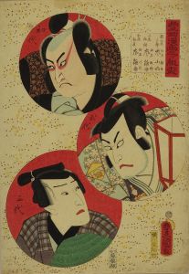 Actor portraits of Arashi Family in sake cups, from Toyokuni manga mitsugumi sakazuki (Toyokuni’s sketches in triple sake cups)