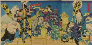 YOSHITORA / Seven deities celebrating raising of a house, triptych