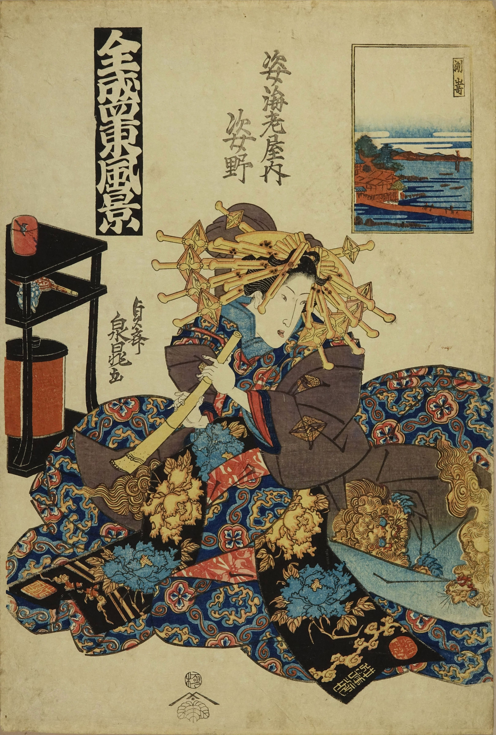 SENCHO / Susaki, from Zensei azuma fukei (Celebrities and famous views of the east), with portrait of the courtesan Sugatano of Sugataebiya