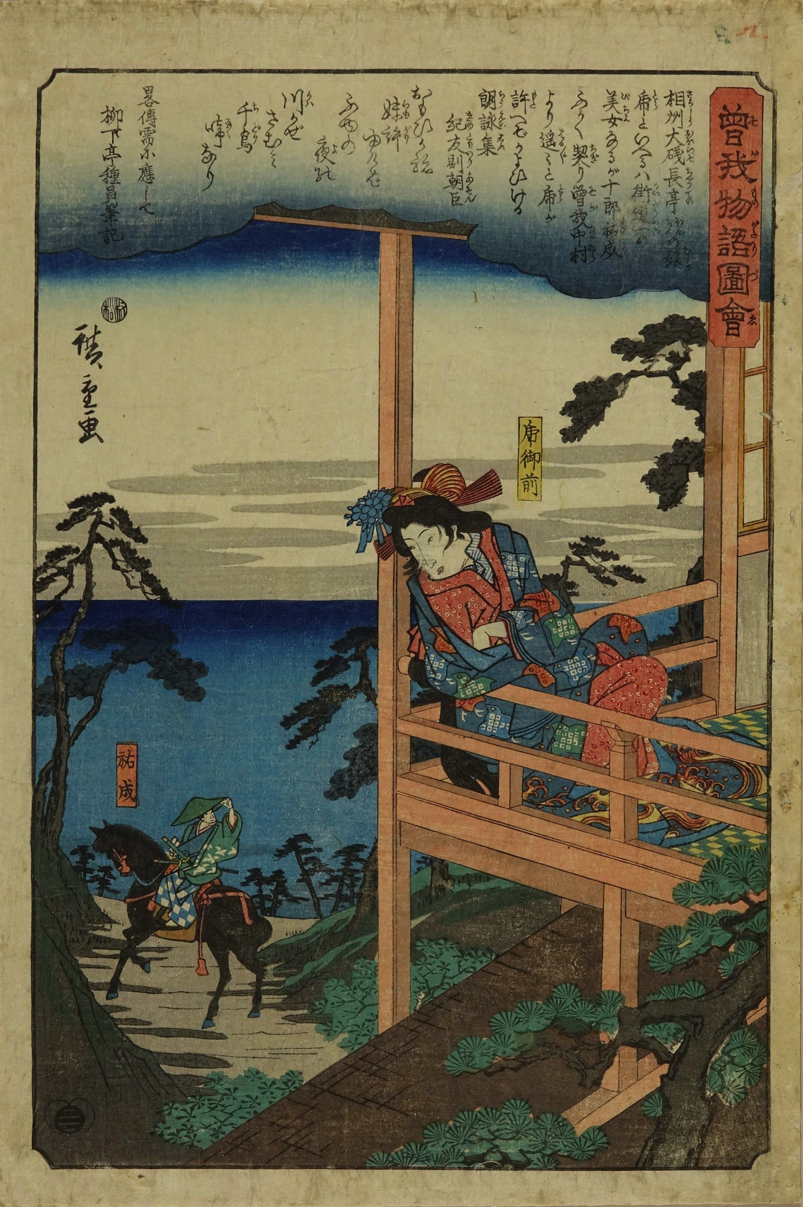 Tora Gozen and Sukenari at Oiso, from Soga monogatari zue (Pictures of the tale of Soga Brothers)