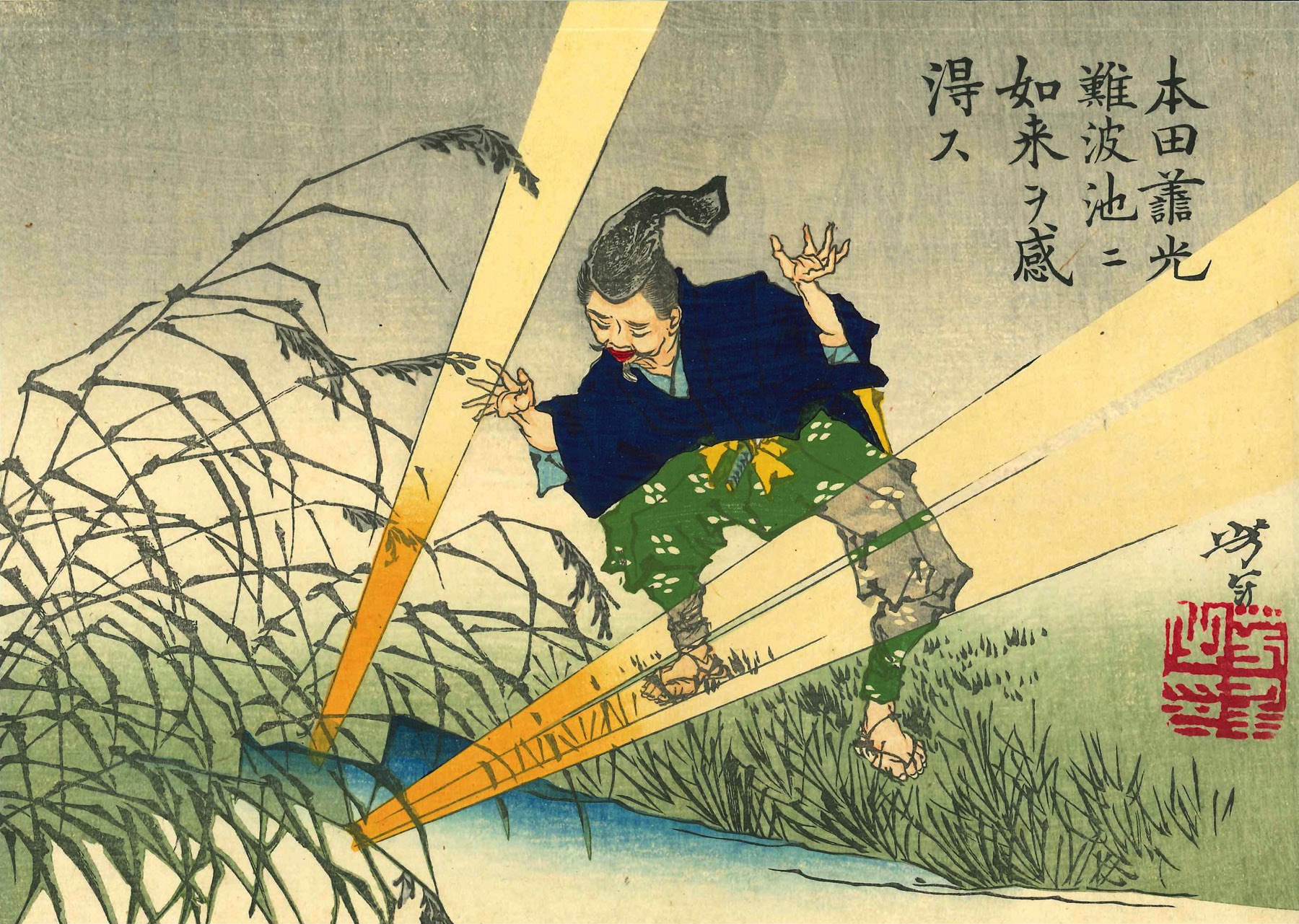 芳年「芳年略画 本田善光難波池ニ如来ヲ感得ス」