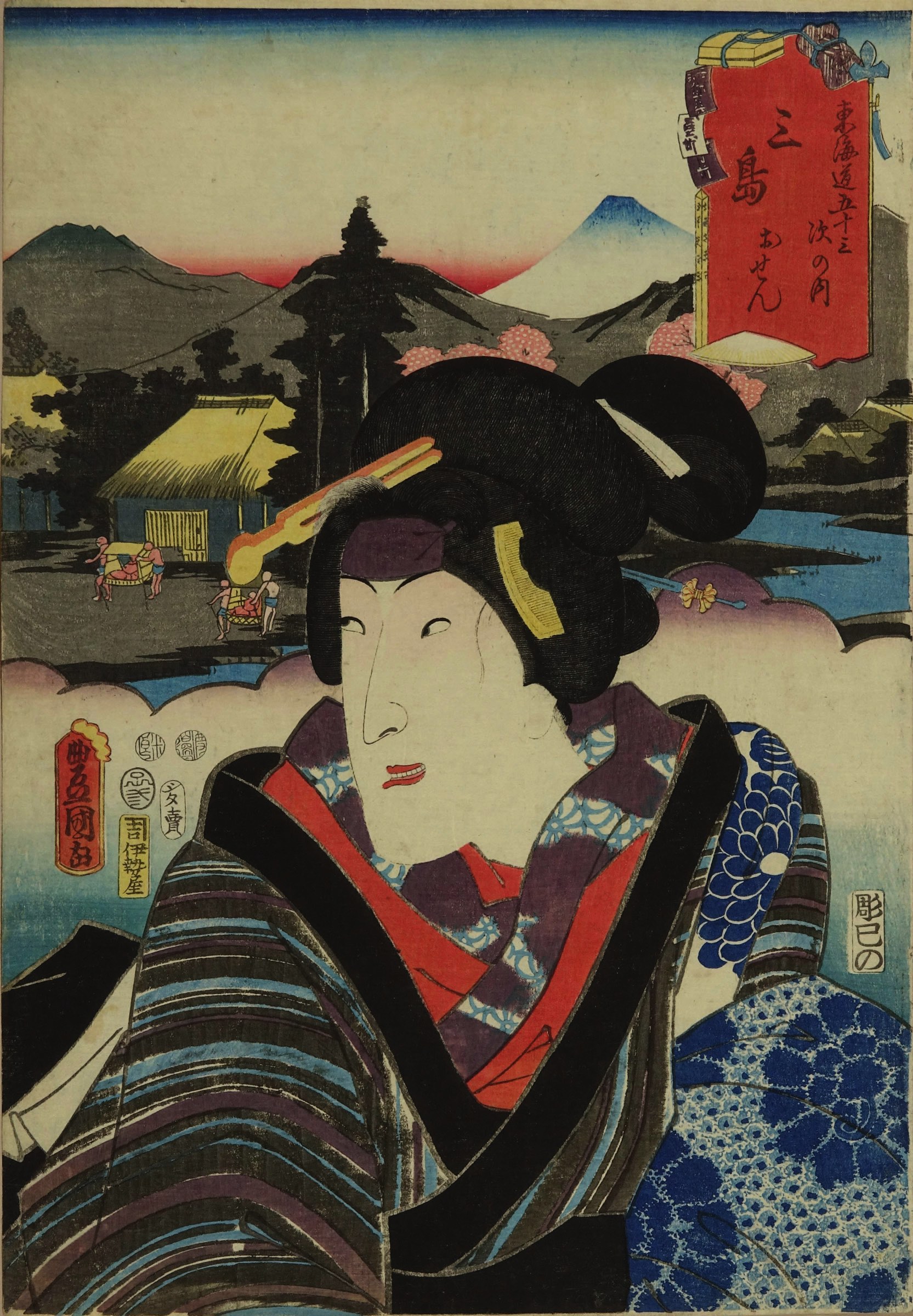 豊国三代「東海道五十三次之内 三島 おせん」